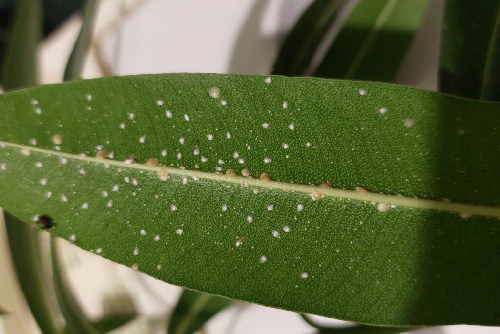 A zöld levéltetvek jellemzően a szeretett rózsáimon pöffeszkednek, míg a pajzstetvek a leandereken érzik otthonosan magukat. Ellenük szappanos vagy mosogatószeres oldatot használok. Ehhez 2 l vízben 15 ml (egy evőkanálnyi) szappant vagy mosogatószert oldok fel és az oldatba mártott papírtörlővel lemosom a kártevőket a fertőzött levelekről, ágakról. Ha szükséges, 10 nap múlva megismétlem.
