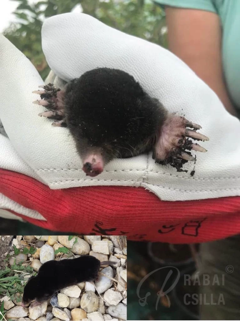 Általában reggel mozog, így ha türelmesen vársz a túrások felett, akkor látod, ahogyan a földet forgatja. Ekkor egy ásóval alá kell kapni és kiemelni a vakondot, majd dobozba tenni és elvinni az erdőszélre, mezőre vagy patak partra, szabadon engedni. Javaslom, hogy a művelethez vegyél fel egy vastag kesztyűt, mert az ásólábaival és harapásával bizony komoly sérülést tud okozni. A fenti képen láthatod, hogy én is marhabőr kesztyűt húztam, mielőtt felvettem volna a talajról ezt a kis csillogó bundás állatot.